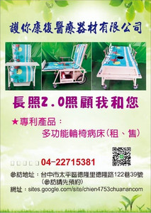 護你康復多功能輪椅病床的專利證書